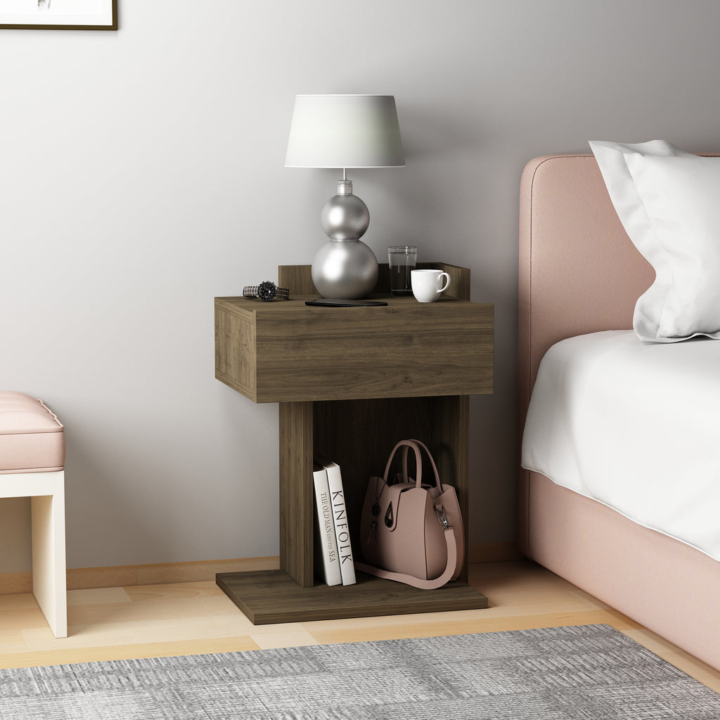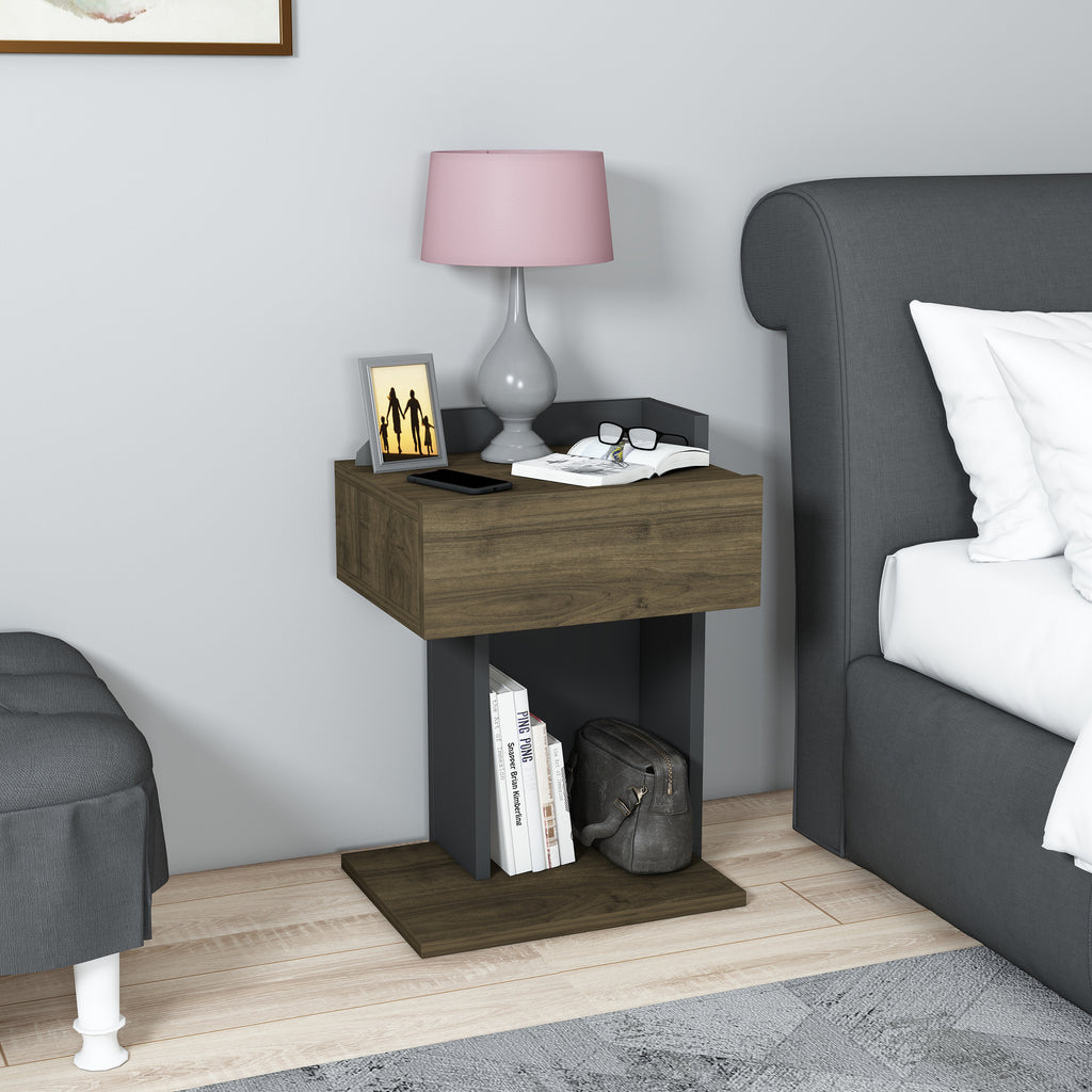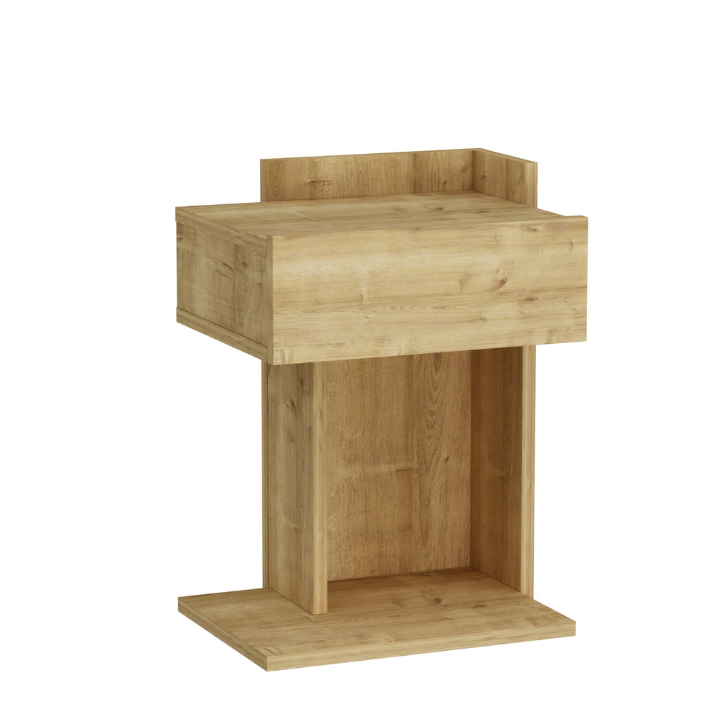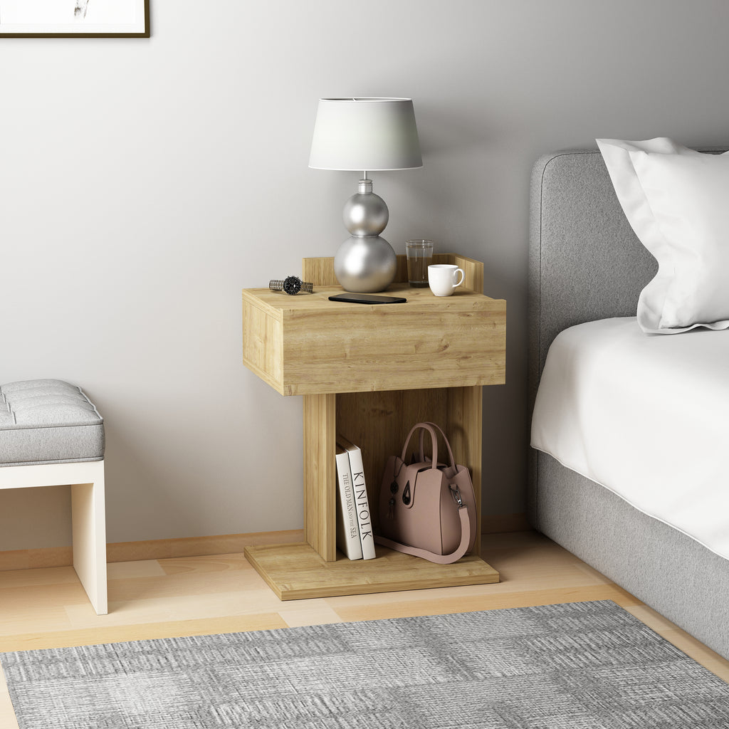 Neben seinem optischen Charme überzeugt der Nachttisch auch durch seine praktische Funktionalität: Er bietet ausreichend Ablagefläche für Lampen, Wecker, Bücher oder persönliche Gegenstände und hilft so, Ordnung zu schaffen. Hergestellt aus hochwertigem Holzwerkstoff mit einer schützenden Melaminbeschichtung, ist der Nachttisch besonders langlebig und pflegeleicht. Ein feuchtes Tuch genügt, um die Oberfläche sauber zu halten – ganz ohne aggressive Reinigungsmittel.