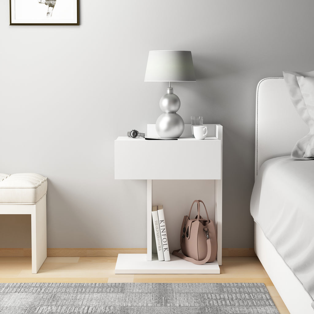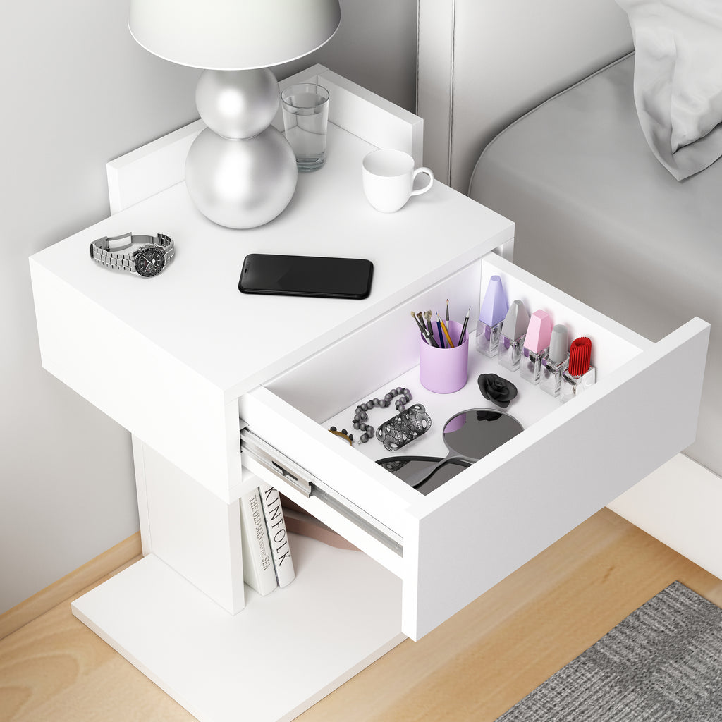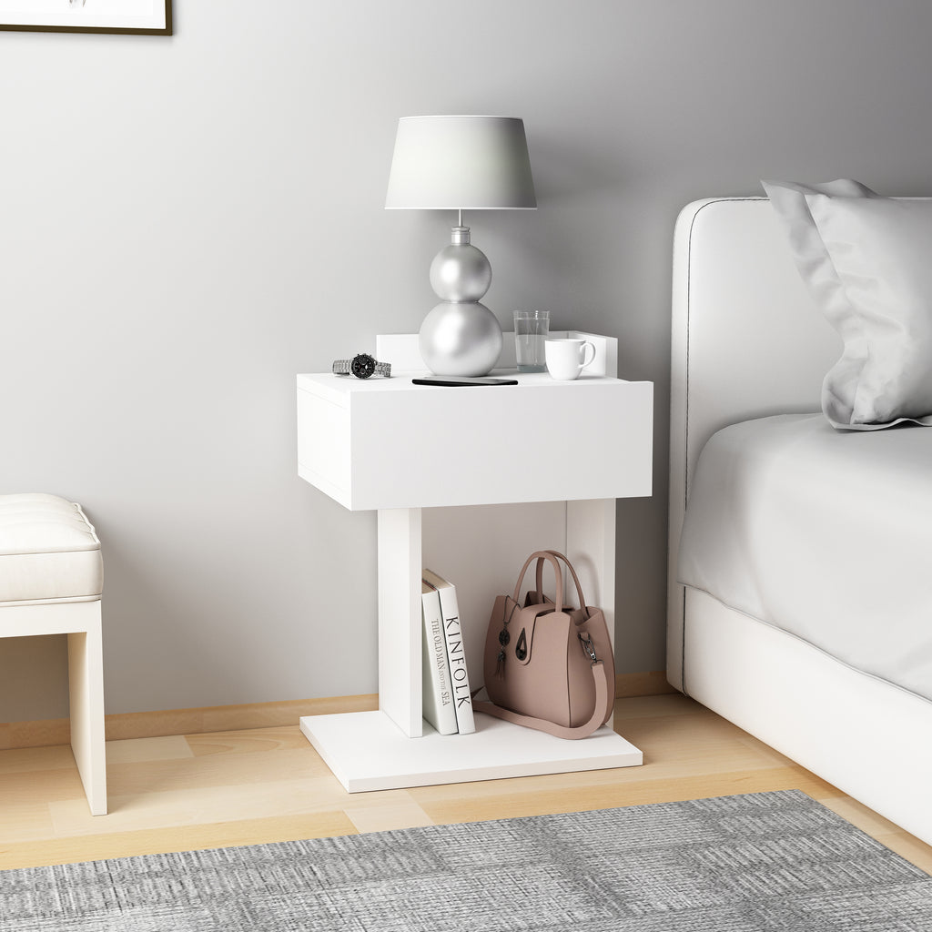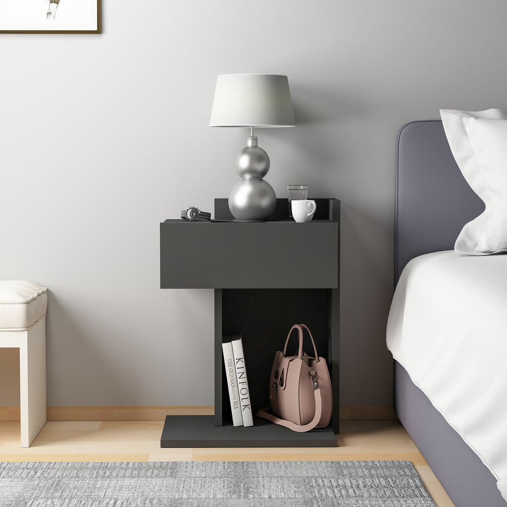Neben seinem optischen Charme überzeugt der Nachttisch auch durch seine praktische Funktionalität: Er bietet ausreichend Ablagefläche für Lampen, Wecker, Bücher oder persönliche Gegenstände und hilft so, Ordnung zu schaffen. Hergestellt aus hochwertigem Holzwerkstoff mit einer schützenden Melaminbeschichtung, ist der Nachttisch besonders langlebig und pflegeleicht. Ein feuchtes Tuch genügt, um die Oberfläche sauber zu halten – ganz ohne aggressive Reinigungsmittel.