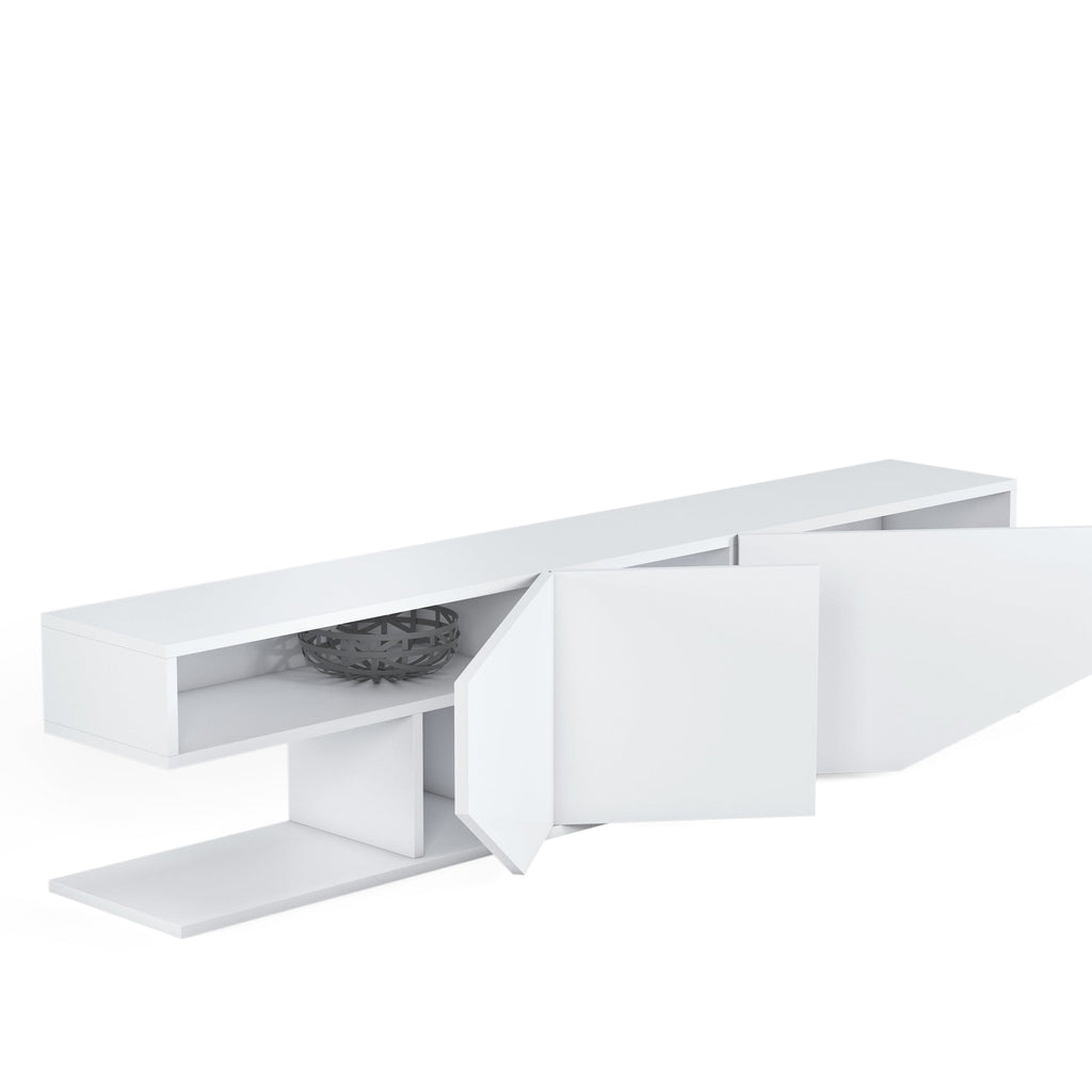 Der Incia TV-Schrank besticht durch schlichte Eleganz und Funktionalität. Mit seiner hochglänzend weißen Oberfläche und drei Türen bietet er großzügigen Stauraum und schafft eine minimalistische Ästhetik in Ihrem Wohnzimmer. Das zeitlose Design und die klaren Linien des Incia TV-Schranks verleihen Ihrem Entertainment-Bereich eine moderne Ausstrahlung, während die großzügige Aufbewahrung Platz für Multimedia-Geräte und Zubehör bietet. Dieses Möbelstück kombiniert stilvolles Design mit praktischem Nutzen, um Ihre Wohnzimmergestaltung zu optimieren.