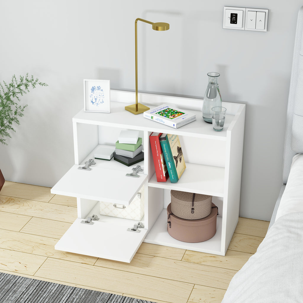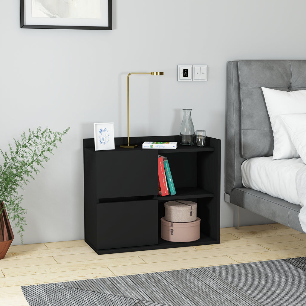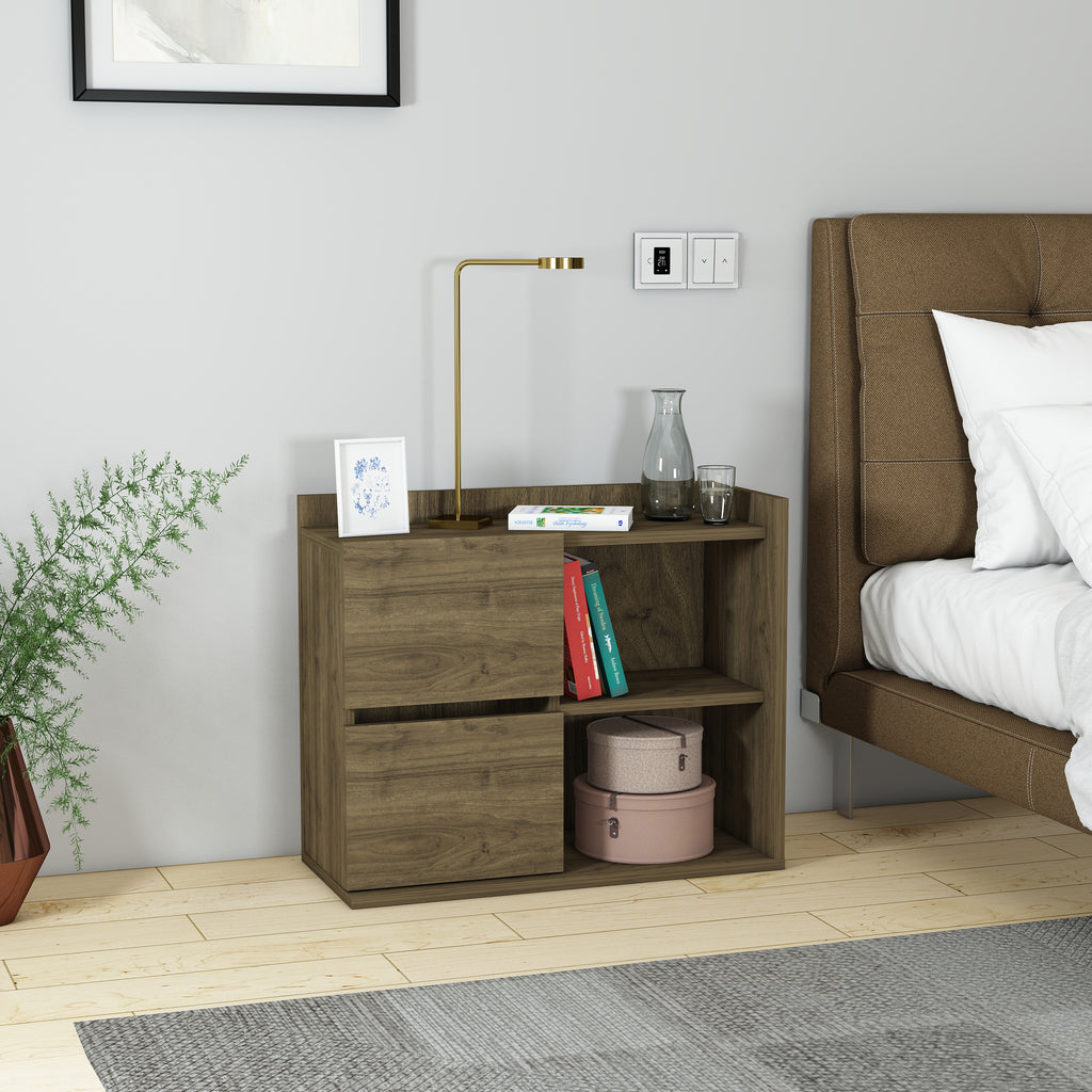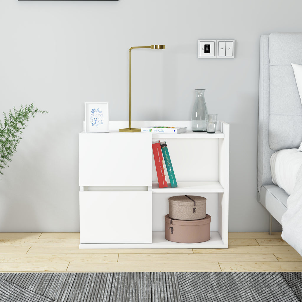 Neben der optischen Eleganz überzeugt der Nachttisch durch seine praktische Nutzung: Er bietet ausreichend Ablagefläche für Lampen, Bücher, Wecker oder persönliche Gegenstände und sorgt dafür, dass alles griffbereit bleibt. Hergestellt aus hochwertigem Holzwerkstoff und mit einer schützenden Melaminbeschichtung versehen, ist er besonders langlebig und pflegeleicht. Ein einfaches Abwischen mit einem feuchten Tuch genügt, um die Oberfläche sauber zu halten. Die Montage ist unkompliziert und schnell erledigt, sodass der Nachttisch direkt einsatzbereit ist.
